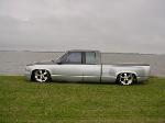Caddy front clip, shaved door and tailgate handles, shaved 3rd brake light relocated to tailgate bodyline with 24 inch led, shaved taillights and rear step and front step pads, custom rollpan filled with modified 97 integra tails, speed glo mirrors sprayed platinum and silver bunch of scratches and dings