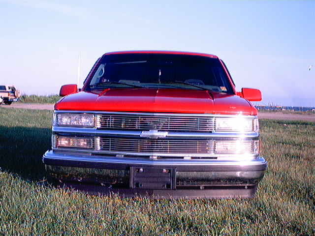 Leds > Euro Corners > Strobes > Billet Antenna, Bowtie, Step Plates > Phantom Grille > Fiberglass Roll Pan > Shaved Doors, Gas Door, Tailgate, Stake Pockets, Taillights, 3rd Brake Light > Chrome Front Split Billet (w/fog lights) Bumper > HoK Paint > Fuel Cell > Cervini's SS Hood > Spray in Color Matched Bedliner > Smooth Wiper Cowl > Dual Signal Electric Mirrors