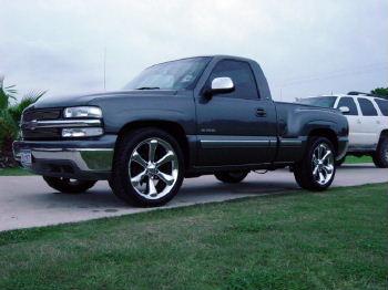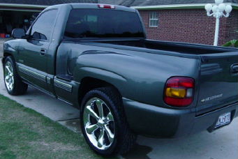 billet grill, clear lenses, billet bowtie, painted doorhandles/tailgate handle and valence, roll pan, all emblems and side moldings are off