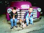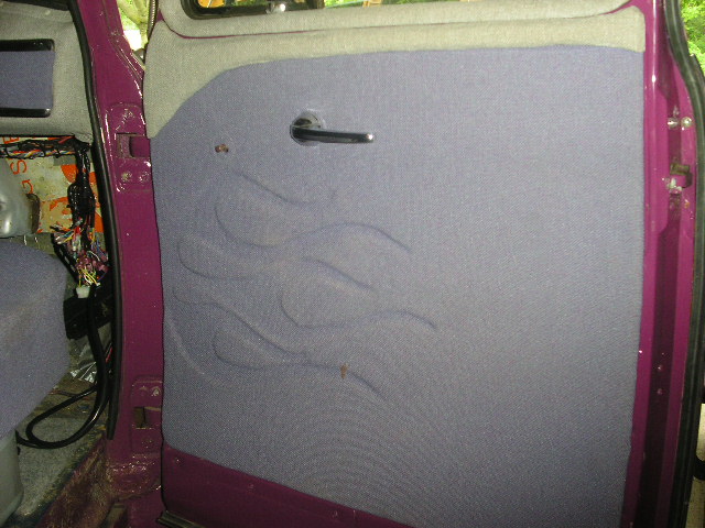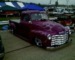 Purple w/ silver flames, chrome grille shaved tailgate