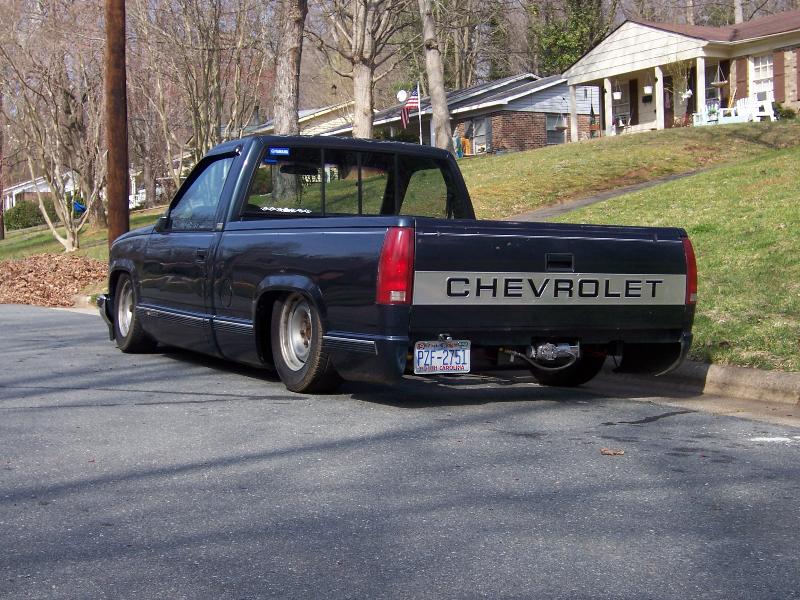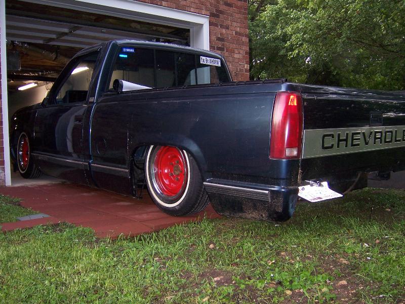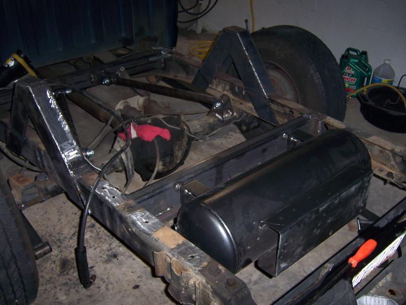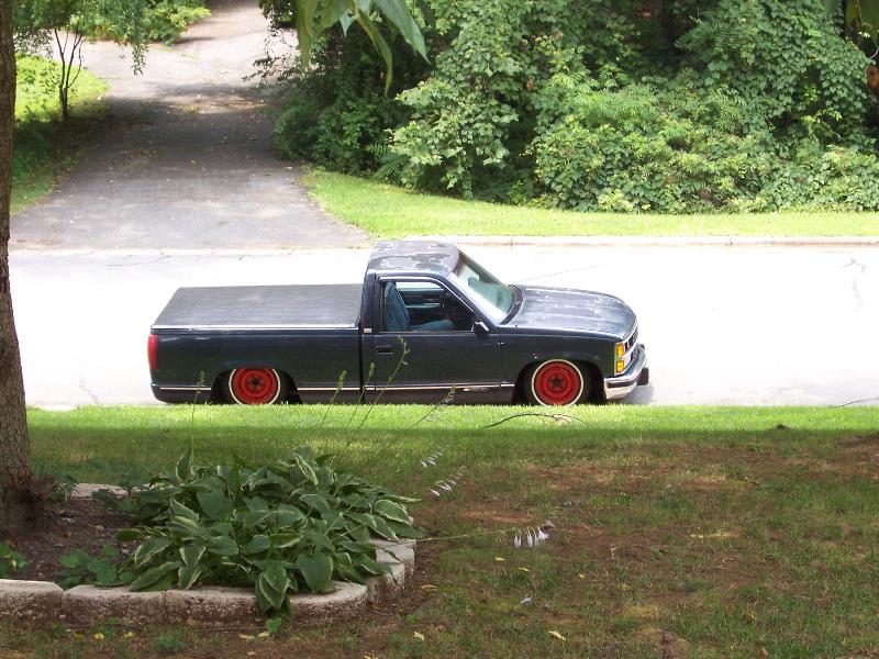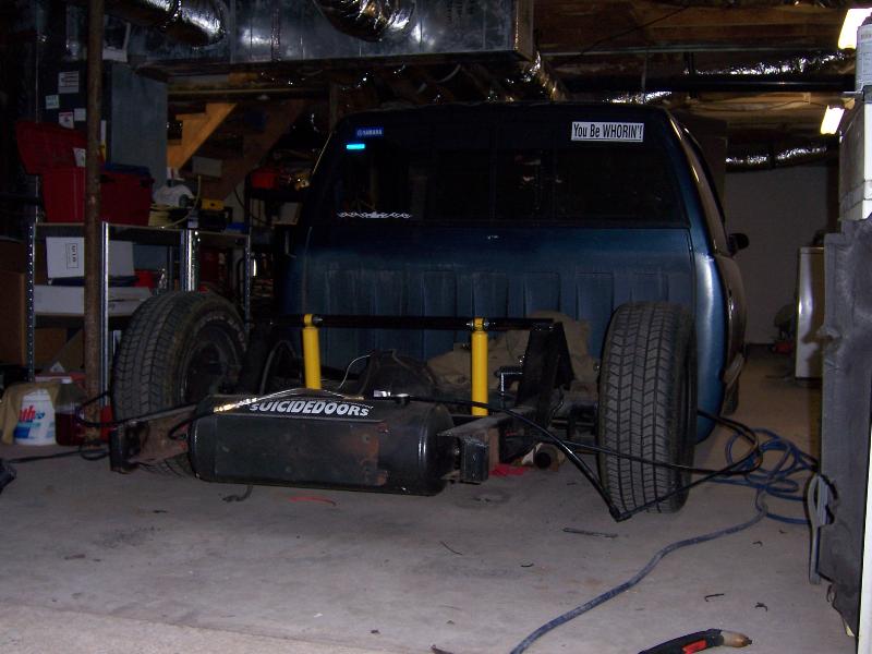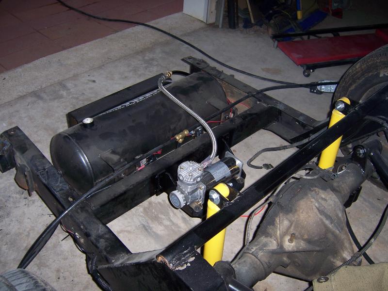 belltech spindle, super pivot 4 link (thorebeck), 9 gallon air tank, triangle notch, 2 slam specialties bags up front, 2 2500 airlift bags out back (will change soon), front cups, and a chrome eai 5 switch box, 1/2 air line, 1/2" asco valves, viair 480c compressor, ranger shocks on front
