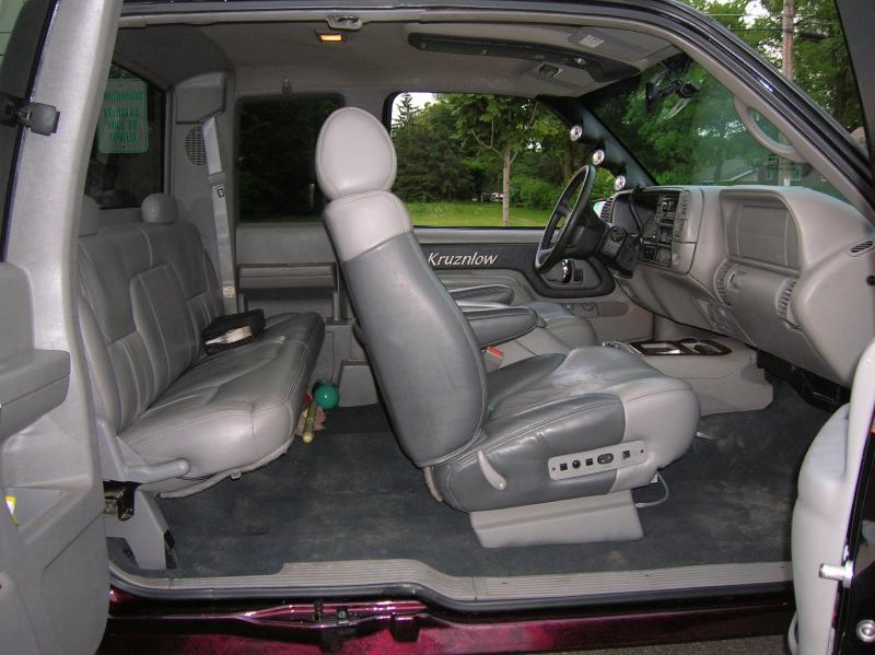'00 Denali two-tone leather buckets, full length console, and misc extra denali parts. Dark floor carpet and rear leather seat. vinyl covered door inserts. Denali 120mph cluster.
