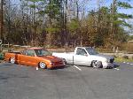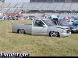 Fully shaved: gas door, stake pockets, taillights, handles, antenna, tailgate handle, and rollpan. Caddy lights out back. Escalade front end swap.