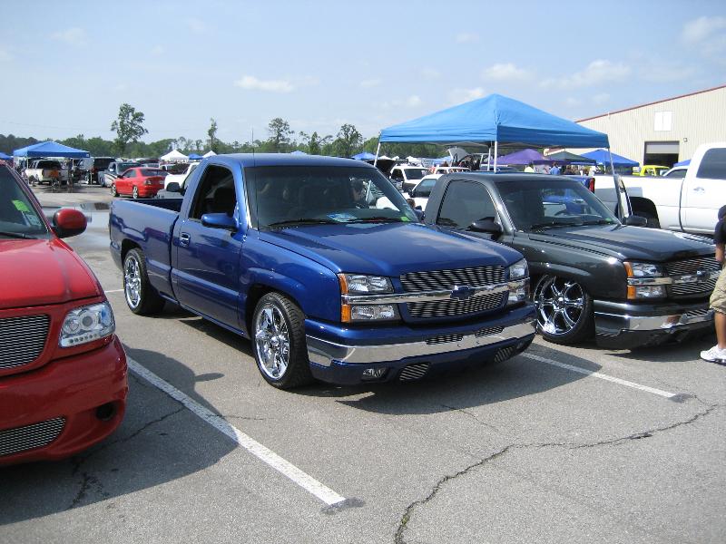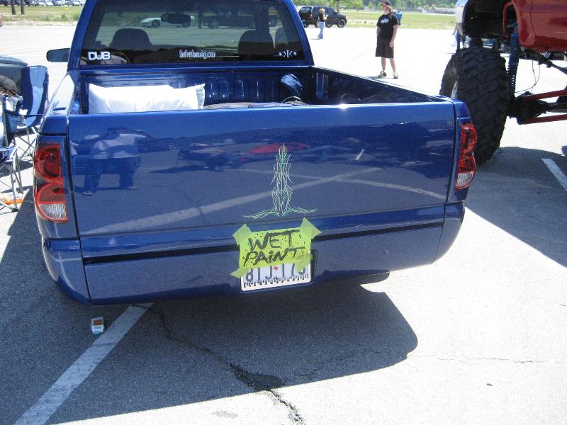 painted bumper, bumper billet grilles, painted taillights, shaved and pinstriped tailgate, rollpan