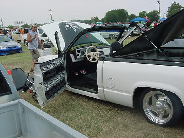 shaved drip rails,door handels,tail lights,roolpan,tail gate latch,stake pockets,mirrors,third brake light,emblims, chopped top 3 inch, toyta peral flat black on top pant,