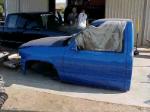 shaved doors, cab seems, gas door, tailights, tailgate, antanna, stake pockets, upper body line solid roll pan, tailgate welded shut clear LED's top of tailgate, tubbed rear fenders, notch cover, panted house of kolor true blue pearl