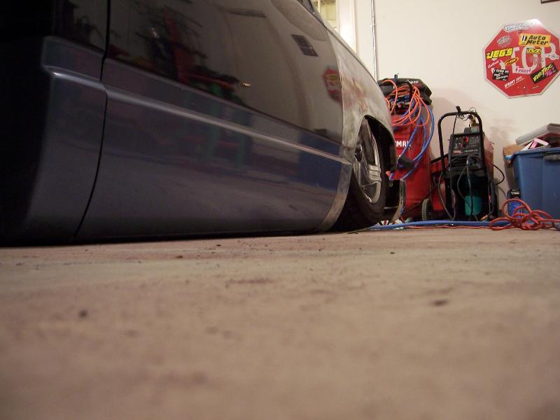 Out for the body drop, but will be kept mostly stock. B.A.D. Wraith full billet wheel. 3 Viair guages on the pillar.