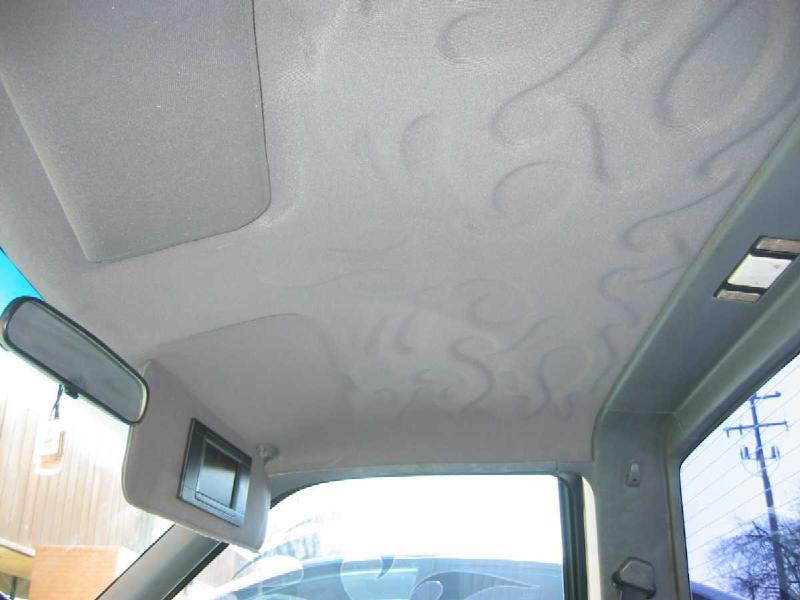 CUSTOM MOLDED HEADLINER WITH TRIBAL FLAME JOB, GRANT STEERING WHEEL