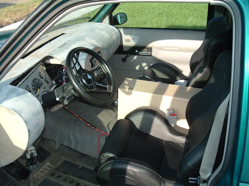 APC Racing seats, custom built fiberglass dash, custom fiberglass woofer enclosure