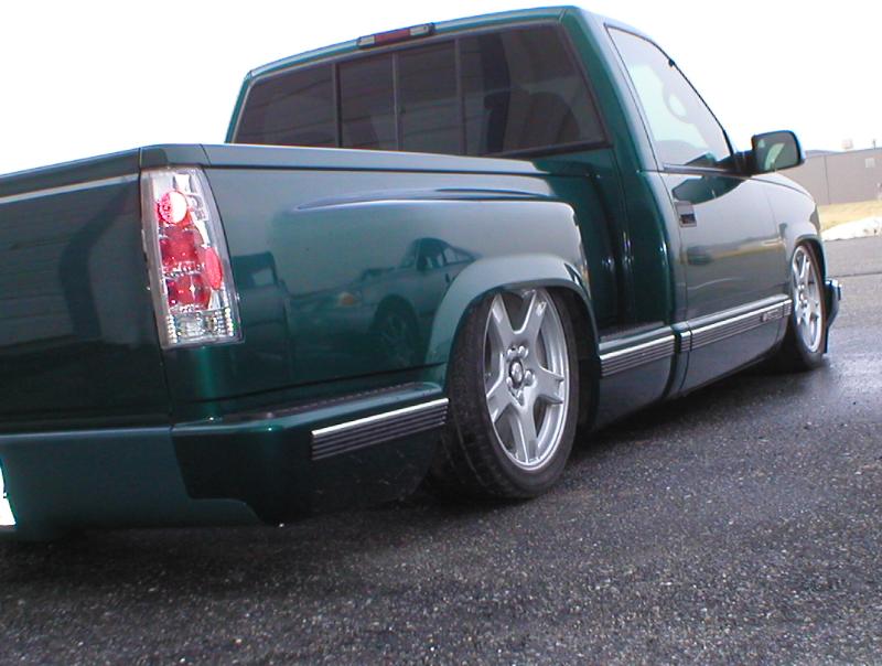 altezza taillights, clear corners, fiberglass rollpan, shaved tailgate handle(bodywork unfinshed), handle relocated inside, emblems removed, trim to be next, working on smooth front bumper.
