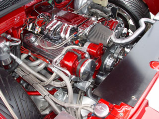 350 bored .030 over with hypereutectic flat top pistons with a chrome Iroc Tune Port Injection, Flowtech shorty headers with Flowmaster dual exhaust system and lots of chrome and billet