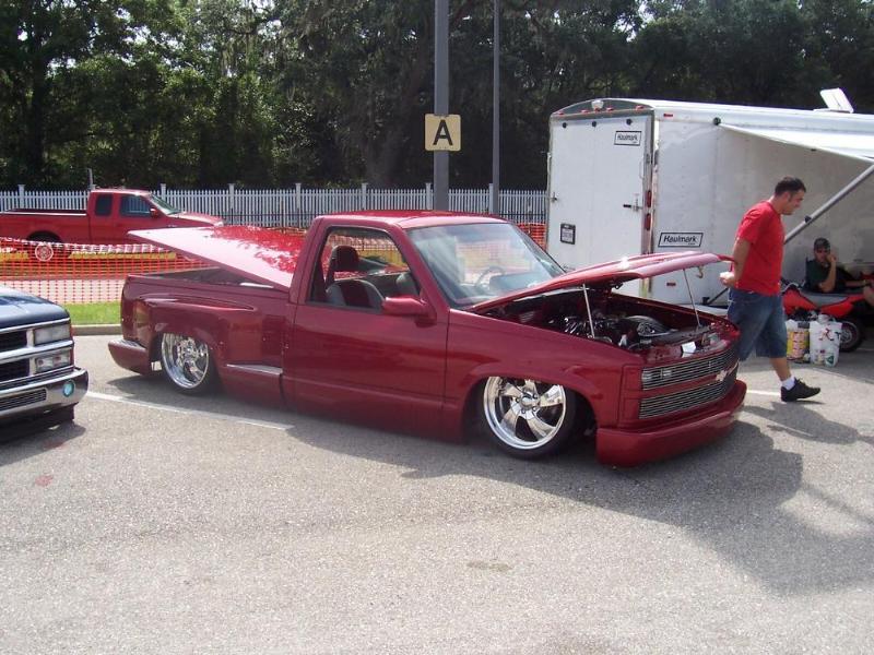 Modified c1500 frame for the bodydrop, bagged, tube a-frames, a 2 link setup in the back. The frame will be painted with chromed a-frames and 2 link