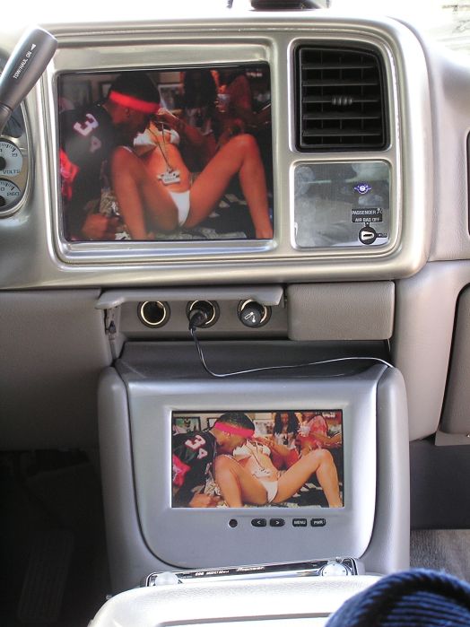 NR Auto White face gauges with white needles,Blue LED's through out,Billetpro Knobs whit bow ties ingraved,Cargo plate, Billet Headlight plate,billet Airbag plate,10.4tv molled in the dash,and a 7"tv too