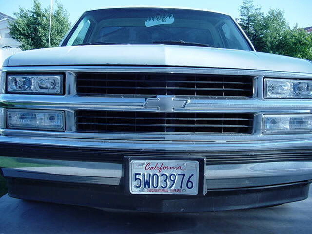 Upgraded Grill, clear side markers .Shaved pockets,Tailights.and handle w/ L.E.D. Lighted Rollpan. Smoothie Bumper. SS mirrors. Euros and Clears W/ Artic White Headlights, white w/ a blue pearl, shaved back body line.
