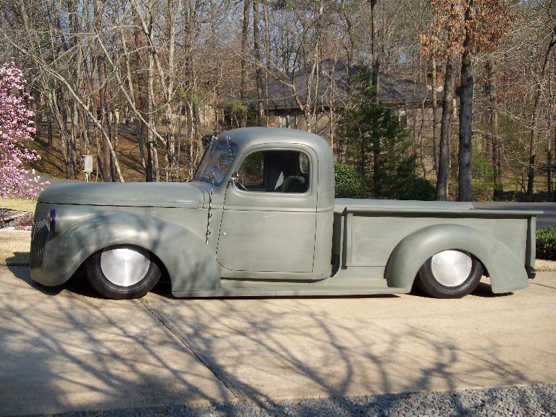IN THE WORKS, FIREWALL AND FLOOR REMOVED AND BODY DROPPED OVER FRAME 4 IN. BOTTOM OF CAB AND DOORS WERE ALSO CUT 4 IN. NEW FIREWALL,FLOOR AND BOTTOM OF DOORS WERE MADE.SMOOTH RUNNING BOARDS AND FRONT FENDERS ARE STILL IN ORIGNAL POSITION. THIS GIVES IT THE HAMMERED LOOK. THE HOOD WILL BE MODIFIED TO ONE PIECE. MODOFIED GRILLE,SUICIDE DOORS. THE BED WILL BE A AFTERMARKET ORIGNAL AND REAR FIBERGLASS FENDERS.