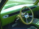 teladaga steering wheel, chrome column kit, chrome flamed mirror and pedals, gray leather,SWADE and alligator seats, smooth dash with dekota digital gauges inset and centered behind a covered screen (hidden) until turned on