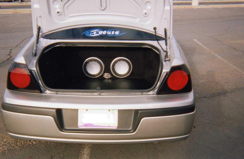 sony head unit, 2 diamond audio 10's in custom box and trunk panels,1000 watt amp, power cap, two 7in head rest monitors, 6.5 in monitor mounted up front