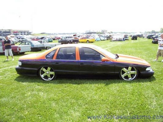 House of Kolor Tangelo Pearl and Black Two-Toned. Airbrushing on 2" Glasstek Hood, Clear Tail Lights.