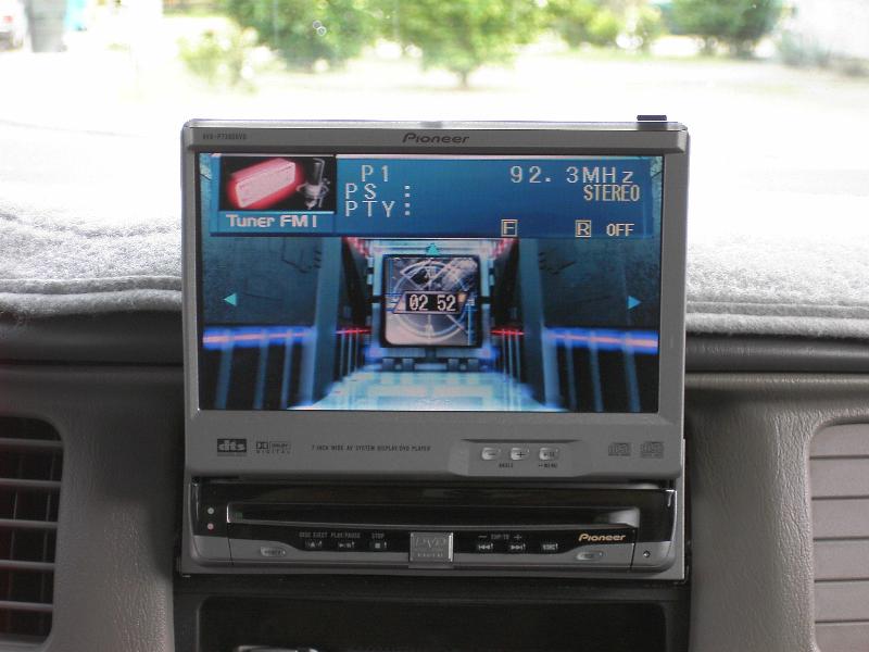 7 inch in dash pioneer dvd/cd, FOCAL front door speakers, PIONEER 3 way 6x9's in back deck lid, motorized amp rack, ROCKFORD FOSGATE 500xp, RF 500S AMPS, 2 KICKER COMP VR 12'S, DYNOMATE throught the car.