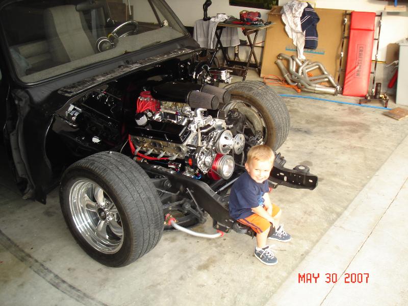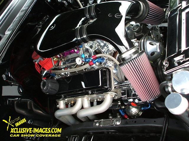 406 small block with Dirt II aluminum heads / 292 comp cam / Holly 750 DP / Edelbock Air-Gap intake / Mallory ignition / Custom made air cleaner, hooker headers 1 ¾ tubs 3” flow Masters, built 350 turbo transmission with B&M 3200 converter, custom drive line to 12 bolt rear end with 410 and locker.