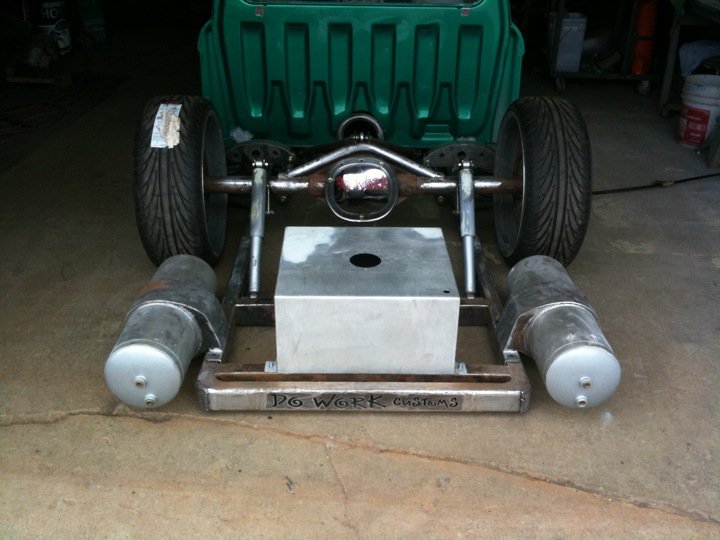 Custom full frame, narrowed front 1.5", custom uppers, underslung rear with canti-lever suspension