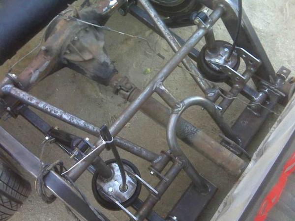 triangulated 4link, with bags on lower bars. bagged up front, 1.5 inch z'd frame and sectioned core support