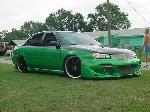 Custom madegrill, Andys Auto Sport Cyber front bumper and dragon z skirts House of Color two tone paint job shaved door handles,side moldings,and antena,4 piece Street Glow Neon kit(green),PIAA blue led fog lights,crystal eye blue lights low,high and blinkers,blue led reverse lights