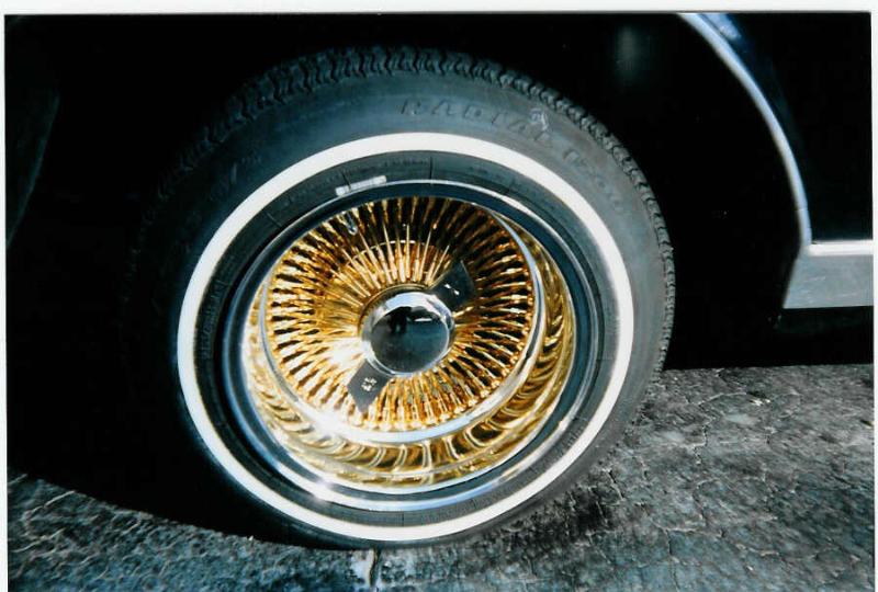 13-inch center Gold Supreme wire wheels w/Chevy Bowtie knockoff