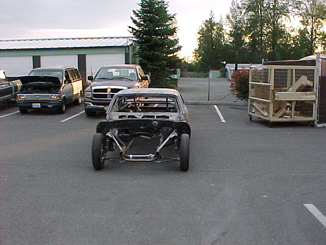 2x3 frame mossison struts in the front ladderbars in the back 8.5 10 bolt 35spline axles and a spool wilwood brakes