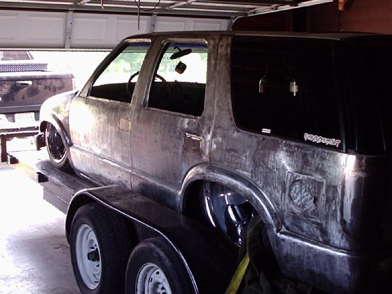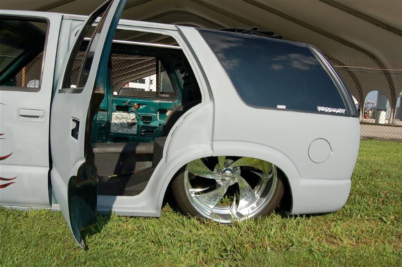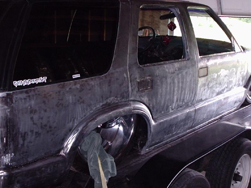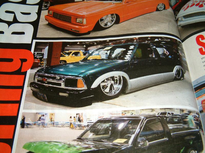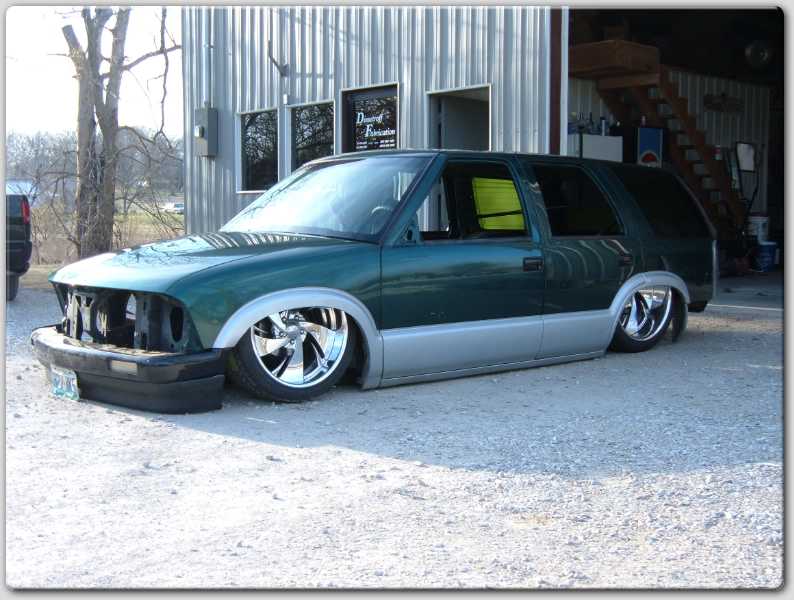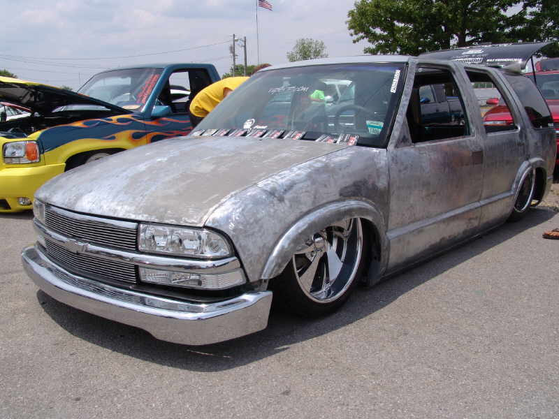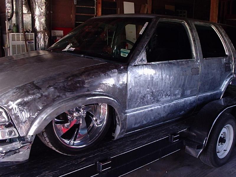 Bare sheetmetal :) 98+ S10 Conversion in Chrome w/ flush billet installed, diamond clear headlights and turn signals, shaved handles all around, shaved gas door, shaved antenna, full rear shaver kit from Grant Kustoms, shaved tails, rear gate welded shut, shaved rear wiper & gate button, shaved stock mirrors, Fireman's Cross Harley mirrors, 38x70 StreetBeat Sliding Rag, shaved 3rd brake light, possibly a Toyota bumper up front from Grant