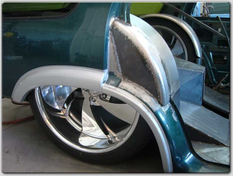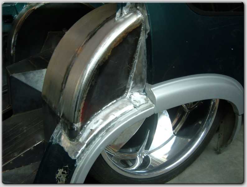 Nothing just yet, new sheetmetal floor from front to rear, full tubs and notch cover out back. Working on a design for a sheetmetal dash currently and looking for a suitable hot rod bench.