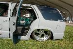 Stock floor body drop to rockers courtesy of Dimetroff Fabrication in Joplin, MO. 8 "E"xtreme 1/2 valves, 4 Slam Specialties Evolution RE7s, custom 4 link rear, ART upper and lower control arms, engine driven compressor, Easy Street gauges