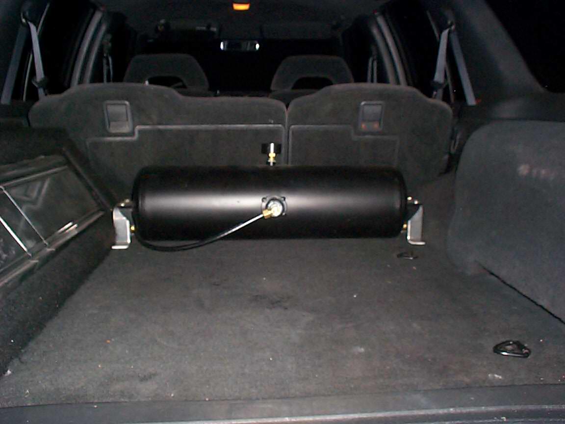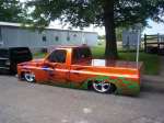 Bell Tech 2" spindles. Custom made 4" step notch. T.C.I. 4-link, 4-2600lb bags ported to 3/8", 4-Parker 3/8 fast valves, 1/2" line, 7 gal. tank and an engine driven compressor. front shocks mounted on sway bar with the frame sectioned for the mount. 2" shaved off of the frame.