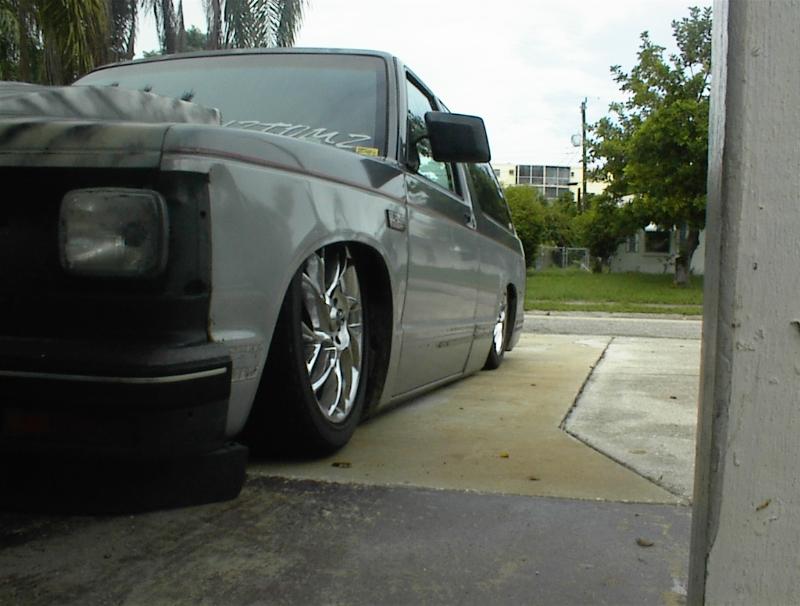 DESIGNING AND BUILDING UPPER AND LOWERS..( BOOGIE THIS DESIGN ON LOWER WILL BE REVELOTIONARY...FORGOT TO ADD STOCK FLOOR BD..ATLEAST 1 FOOT BEHIND DRIVERS SEAT BASIC FRONT BACK SET UP 1/2" VALVES SLAM BAGS, BUILT MY OWN FRONT CUPS PLATED AND TRIMED LOWER CONTROL ARMS, BUILT 2 LINK( BAGS ON LINK BARS ) TWO 5 GALLON TANKS MOLDED INTO THE WALLS OF THE INTERIER....ENGINE DRIVEN COMPRESSER IF I CAN GET IT WORKING RIGHT...BUILT MY OWN BRAKET.....THE BELT WORKS