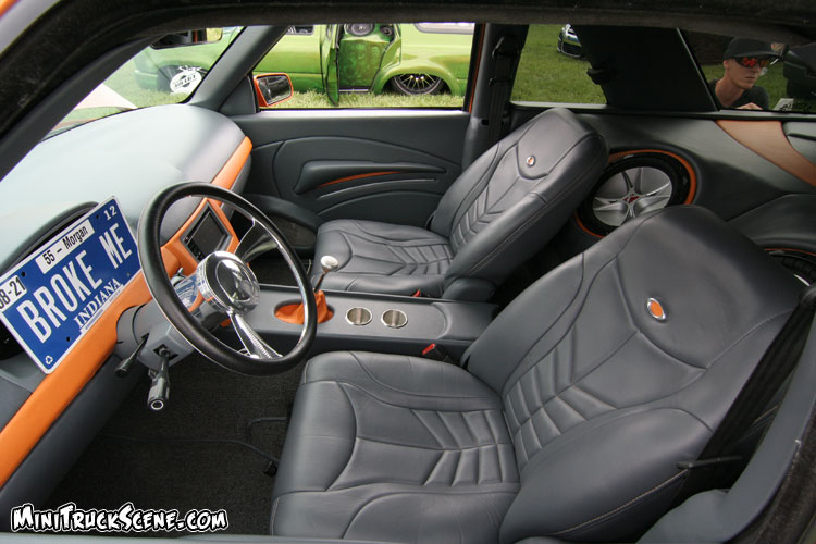 all leather and suede headliner-customer colbalt dash, hand built door panels, chysler mini van middle row seats