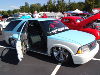 Suicide Doors, Shaved door handles, tail lights, roof rack, hood squirters, third brake light, antenna, roll pan, GMC Envoy front clip, street scene mirrors, 47" LED tail light bar in the tailgate