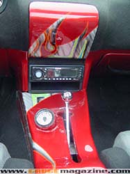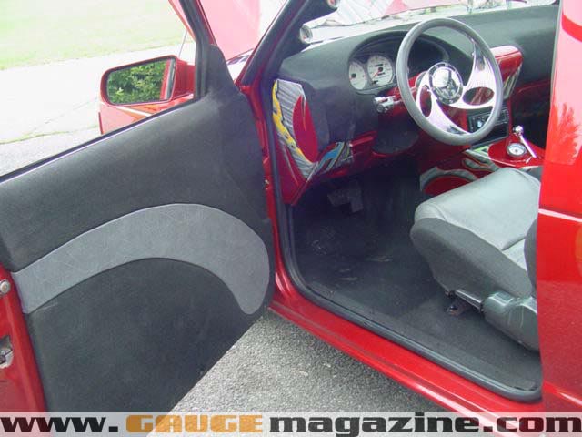 Custom dash (Acura Integra), Fiberglass Console painted to match, Custom seats.