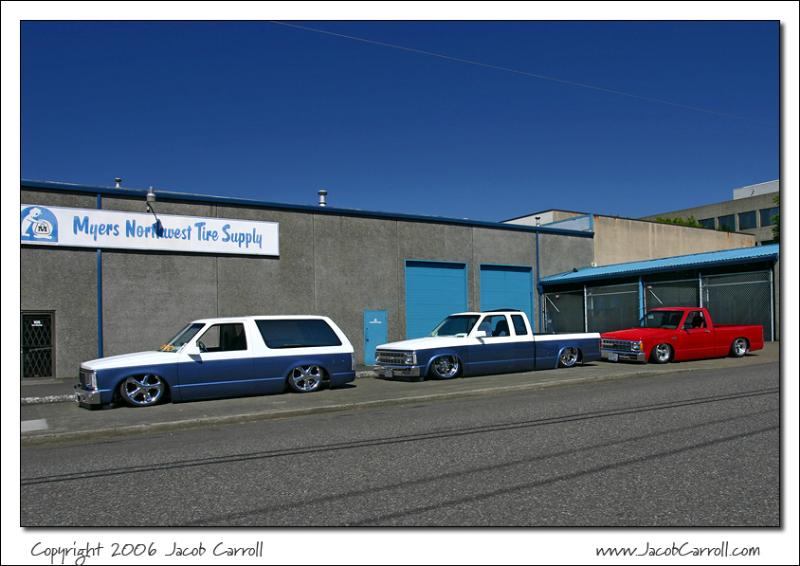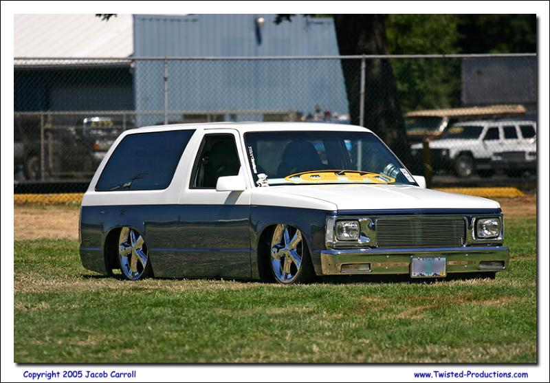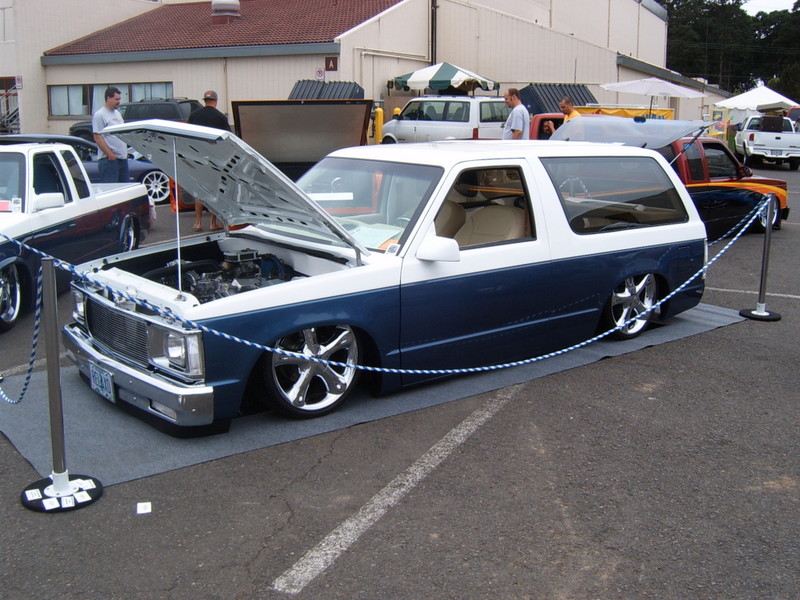 shaved:handles,locks,antenna,roof rack,spare tire holder,roll pan,stock hood,body seams,rolled pinch,93 s10 frt clip,modified fullsize mirrors,angled rear license plate in tailgate,5' body drop