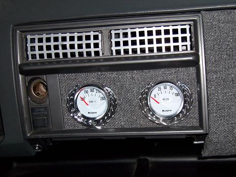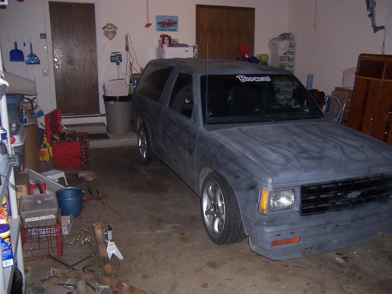 black electric leather seats from a 94 bravada, wrapped gauge pod, glovebox door, and plate where deck used to be in salt-and-pepper tweed, a-pillars done in black tweed, just need more tweed to redo my pillars, relocated my deck to console, removed backseat, fixing to build a new console, new sunpro volt, oil and temp gauges