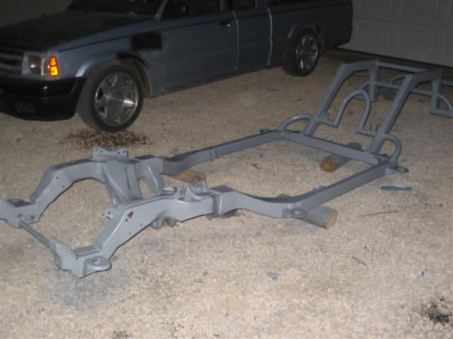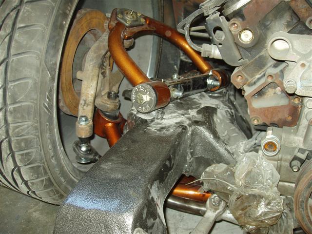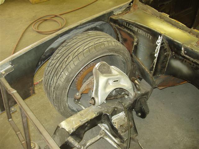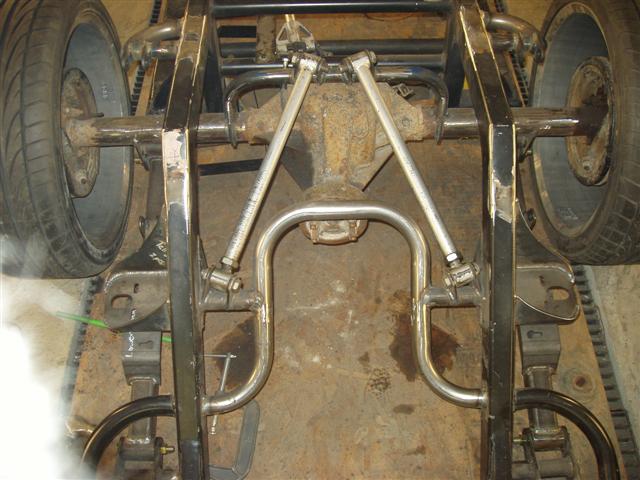 2x3 3/16 wall frame from firewall back for SFBD. Powedercoat Primer, Silver Vein and Clear Coat. Tri 4 link with bags on the lower bars. RE7s all around. Thorbecke Bros (suicidedoors.com) Control Arms