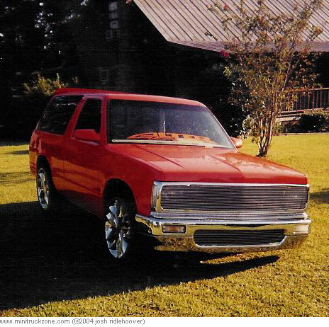 shaved doors roll pan phantom grille!!! supra taillights, shaved body line,roof rack, welded tailgate shut, blah blah blah!! wuz in a wreck dont have the pics from when it wuz orange just the in between and rimer pics lost the before!!!