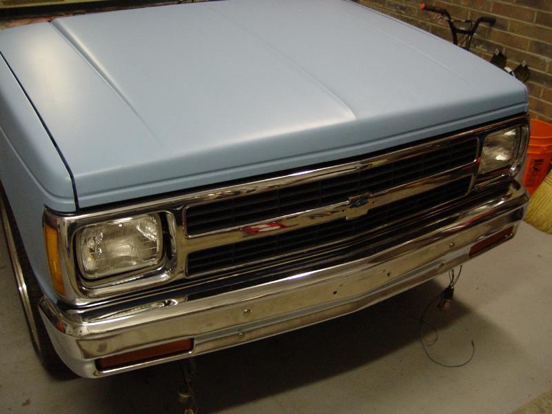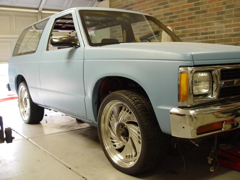 PPG blue primer, 91 front clip, smooth front bumper, shaved doors & tailgate, Street Scene mirrors, spoiler sunroof.
