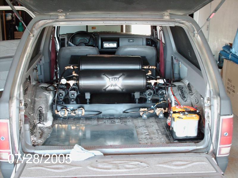 slam rs72's all around, new sub frame, wishbone 3 link, shocks, 4 firestone compressors, two 5 gallon tanks running 150 psi, by Hardkore Kustoms