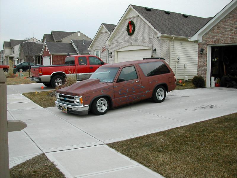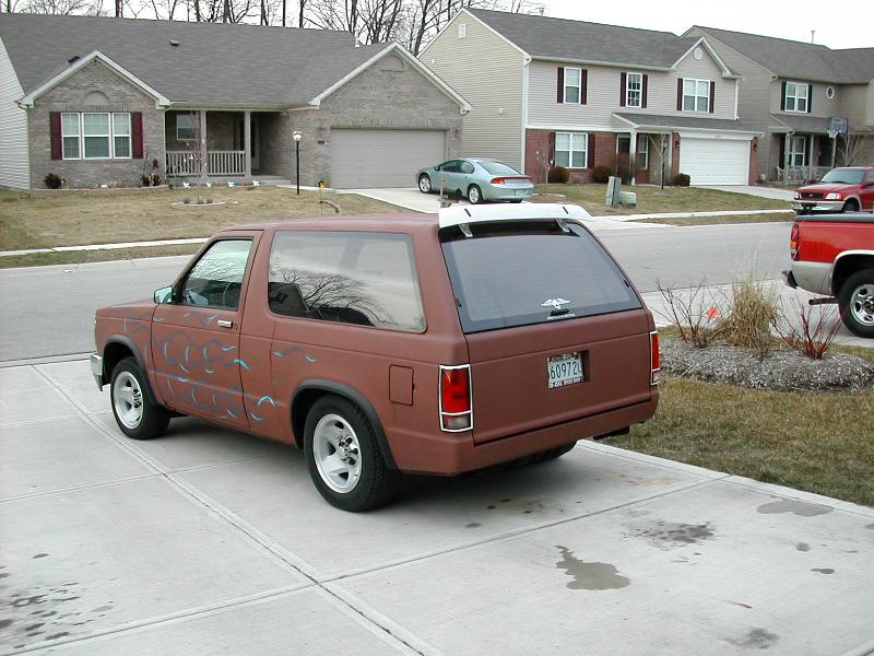 working on it,shaved roof rack,role pan,shaved cowl,gmc grill,french tag in tail gate,toyota bumper and valance,suicide hood