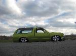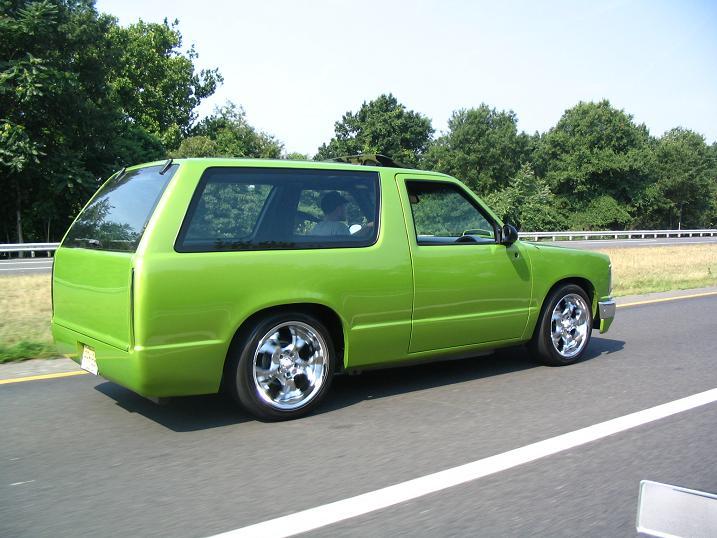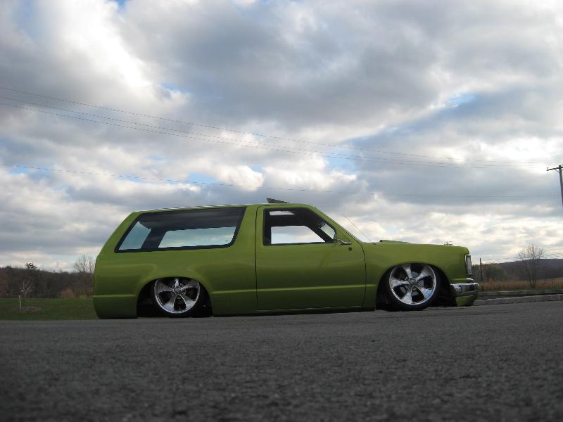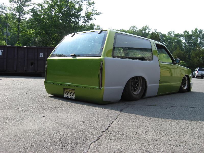 shaved: spare tire rack, handles, roof rack, body lines, emblems, roof seams, wiper cowl. Caddilac tail lights, 2nd gen s10 roll pan with 2nd gen rear s10 bedsides, suicide doors, shaker hood scoop, metal rocker extensions, toyota bumper, sunroof, all clear glass, much more but i forget...