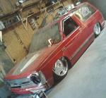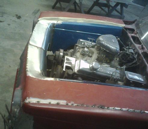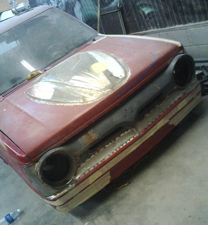 56 ford grill shorten 6" an short front brumper, stock outer fenders for the inner fenders, an shaved azz end