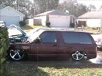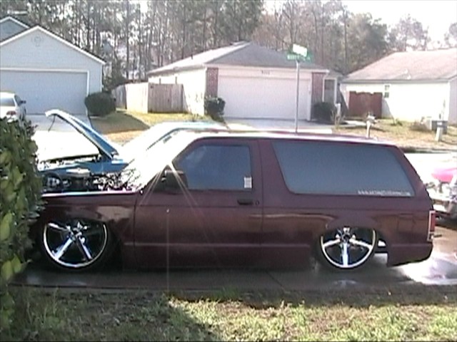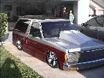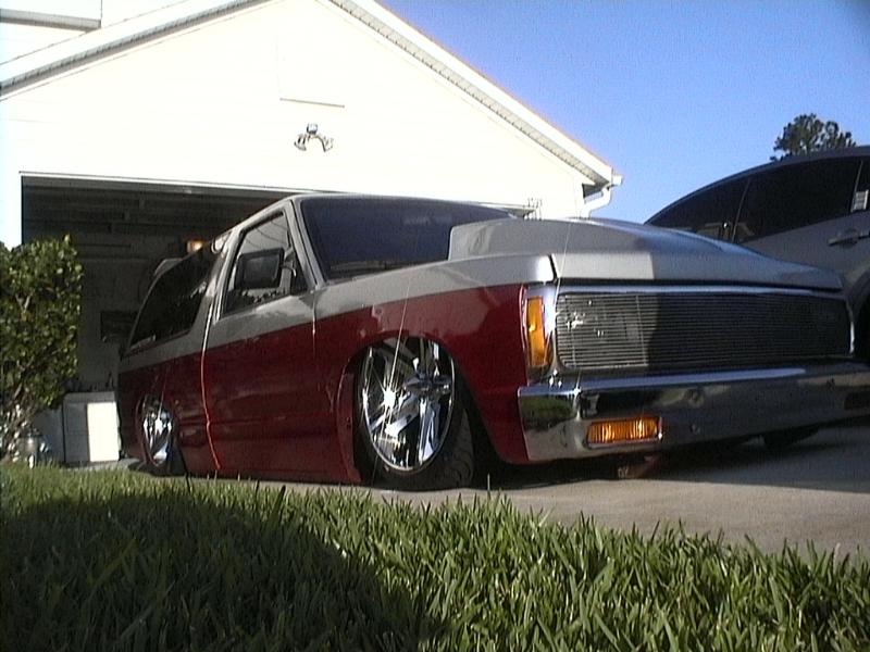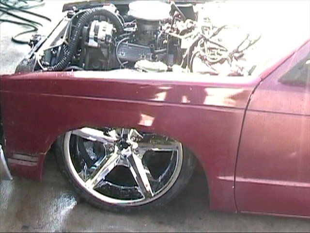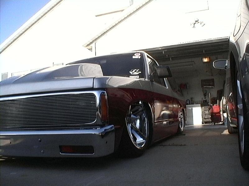 custom built frame made with 2x3 tubing , stock floor and standard body drop 6-3/4", 2600 4ply conitechs all around , 8 gallon air tank, 2 viair 380 compressors all 1/2 " air lines