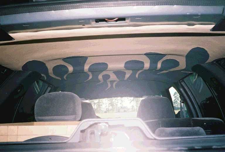 stitched flames in headliner, custom v-style box for 18-12's, front seats are stock
