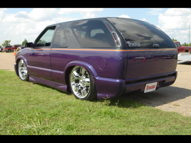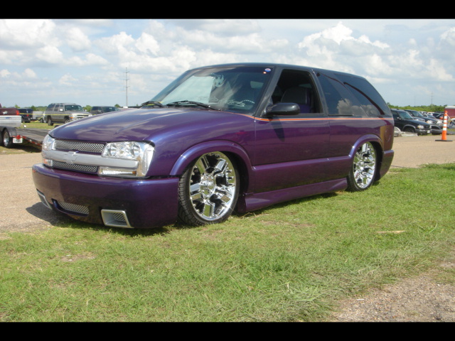Radar Blue and Midnight Graphite two tone paint, Fully shaved, Trailblazer headlights and grill, full size Chevy SS bumper cover, custom LED Taillights,