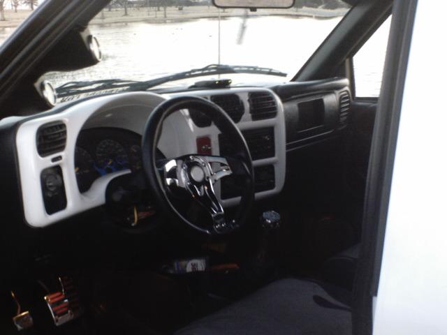 Smoothed and painted pieces throughout the cab, billet steering wheel, cavalier seats replaced stock bench.